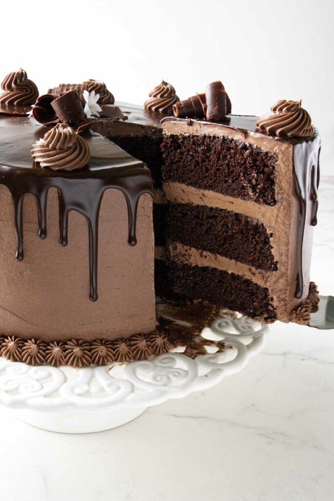 The Triple Chocolate Cake with Chocolate Buttercream is a decadent dessert that features layers of rich chocolate cake, filled and frosted with velvety chocolate buttercream. It is a chocolate lover's dream, offering a perfect balance of flavors and textures.