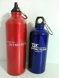 The gift hampers may contain water bottles from various airline companies in the world.